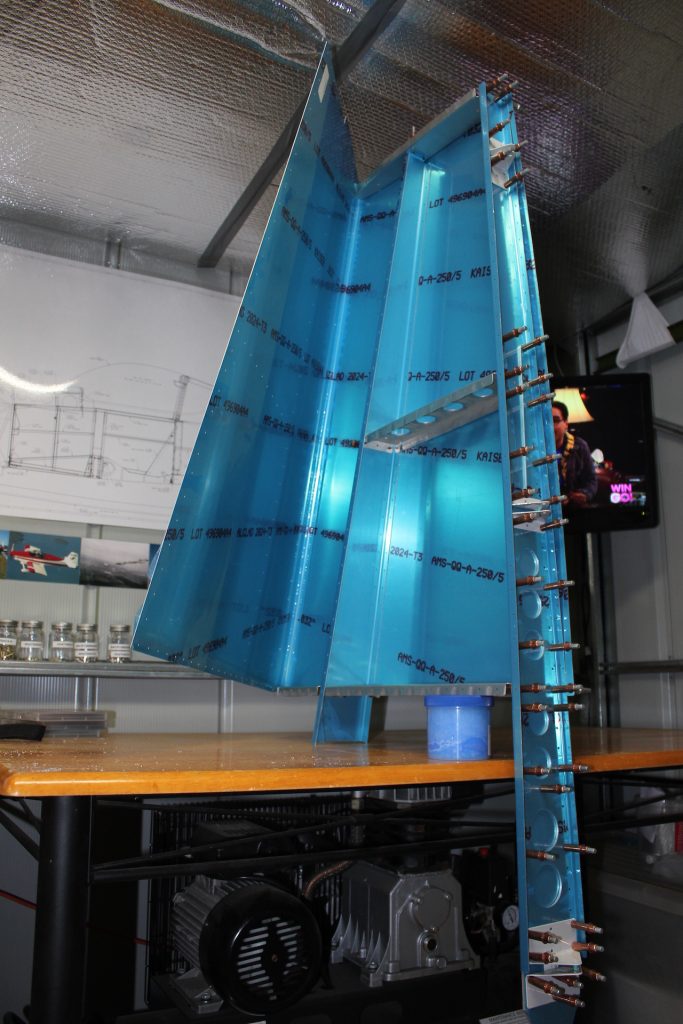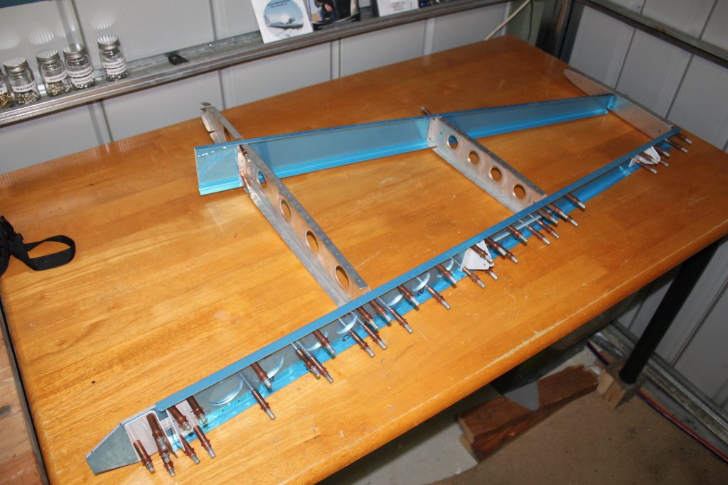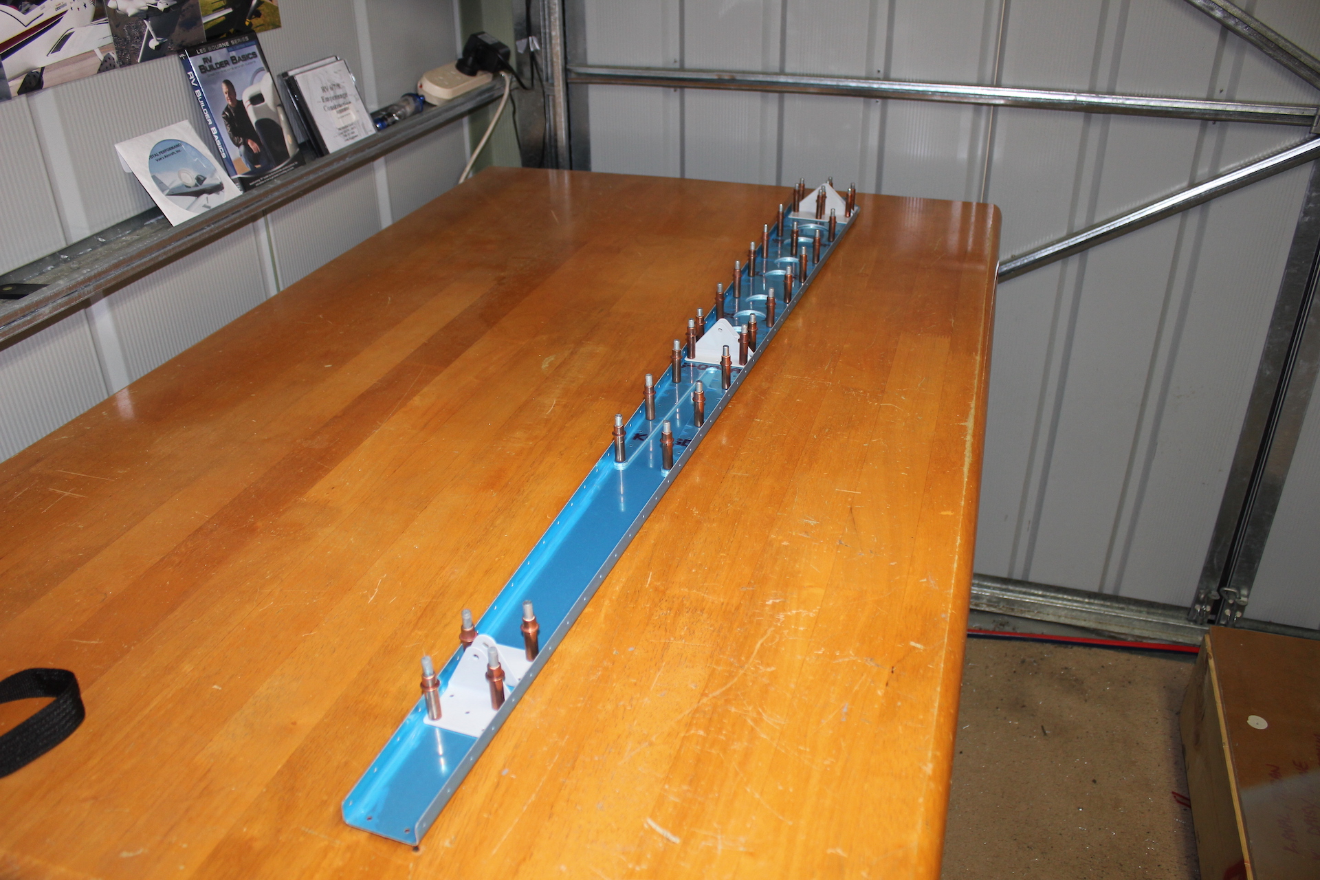 -Clecoed the VS808PP Rear Spar Doubler to the VS803PP Rear Spar Channel, then clecoed the VS410PP, 411PP & 412PP Hinge Brackets to the Rear Spar Assy.