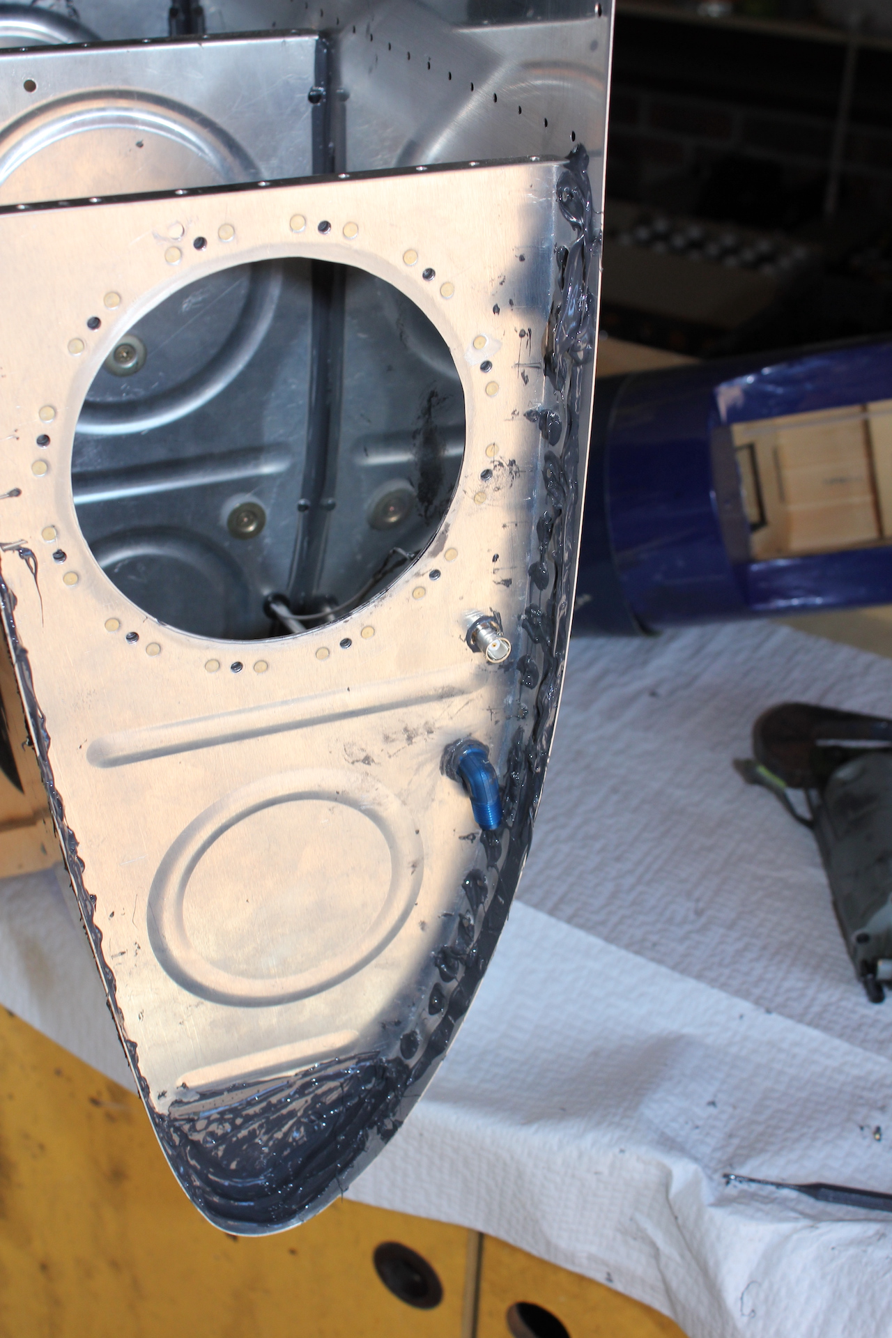 -SEALED AND RIVETED T-405 & T-410 INTO PLACE