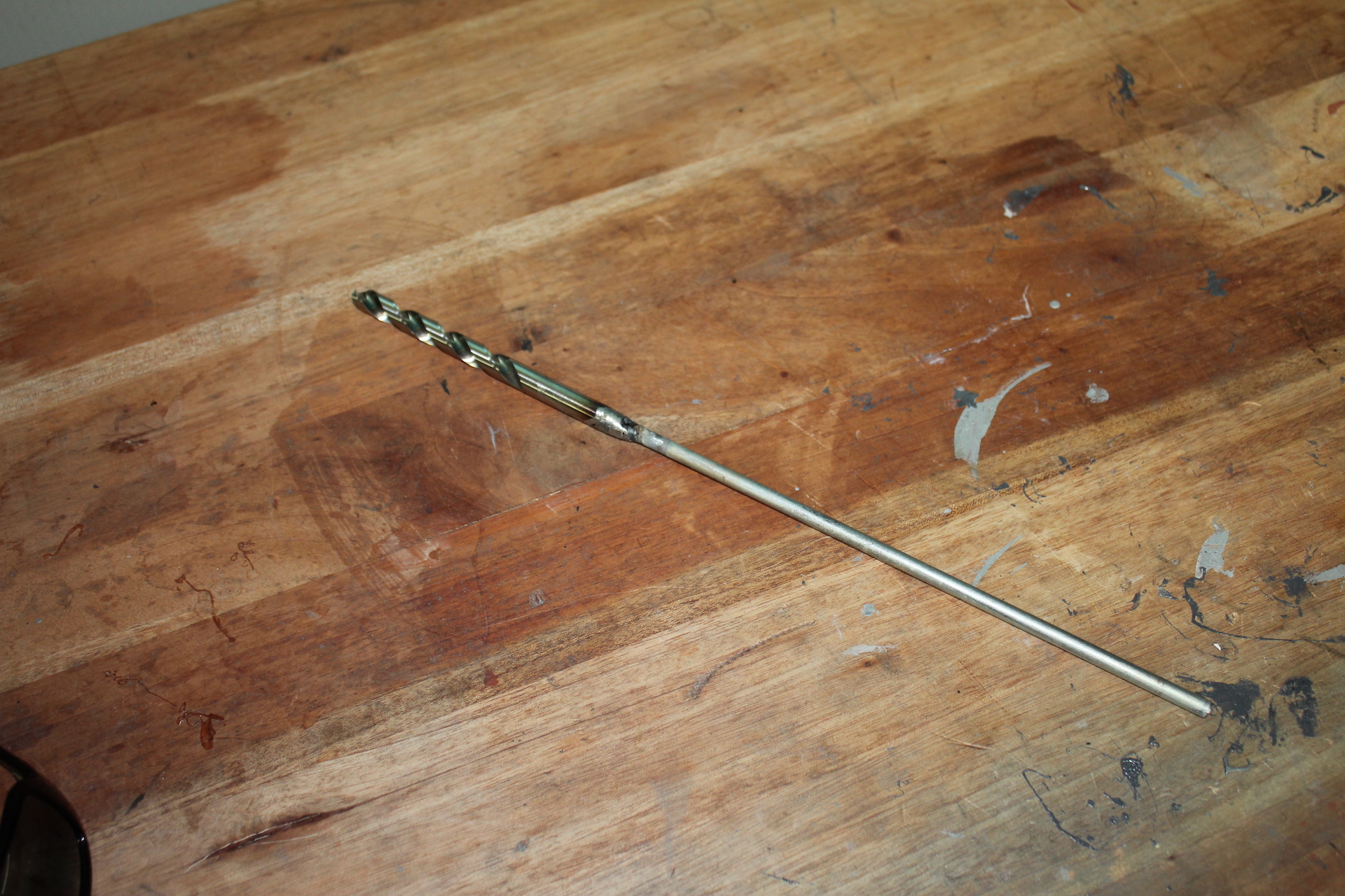 -STARTED BY MAKING UP A LONG DRILL TO DRILL PITOT/AOA HOLES THROUGH THE WING WALK RIBS, AFTER A LOT OF THINKING I ENDED UP JUST WELDING A PIECE OF STEEL BAR ONTO THE 3/8 DRILL BIT, AND THIS WORKED WELL