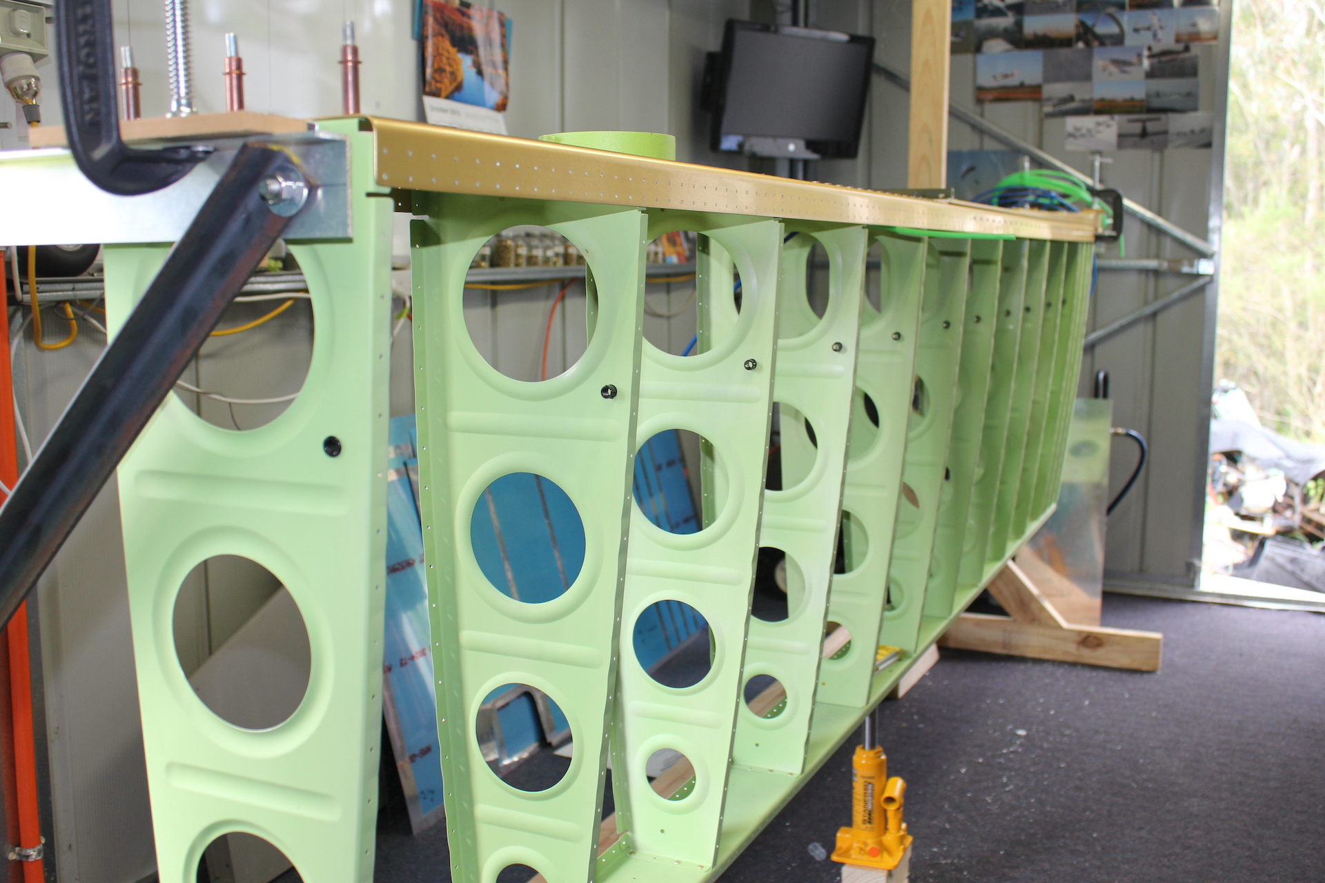 -FINAL DRILLED MAIN SPAR FOR WIRING RUN AND INSTALLED SB375-3 BUSHING