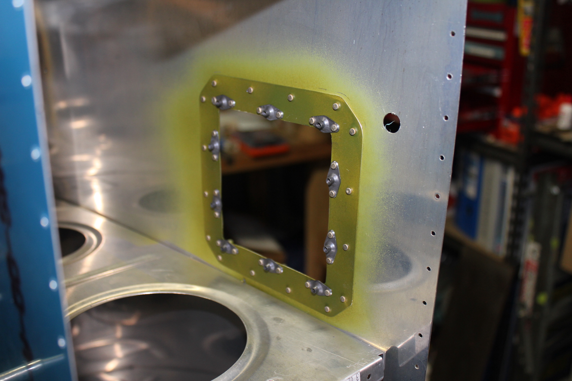-RIVETED NUTPLATES ONTO STALL WARNING ACCESS HATCH DOUBLER