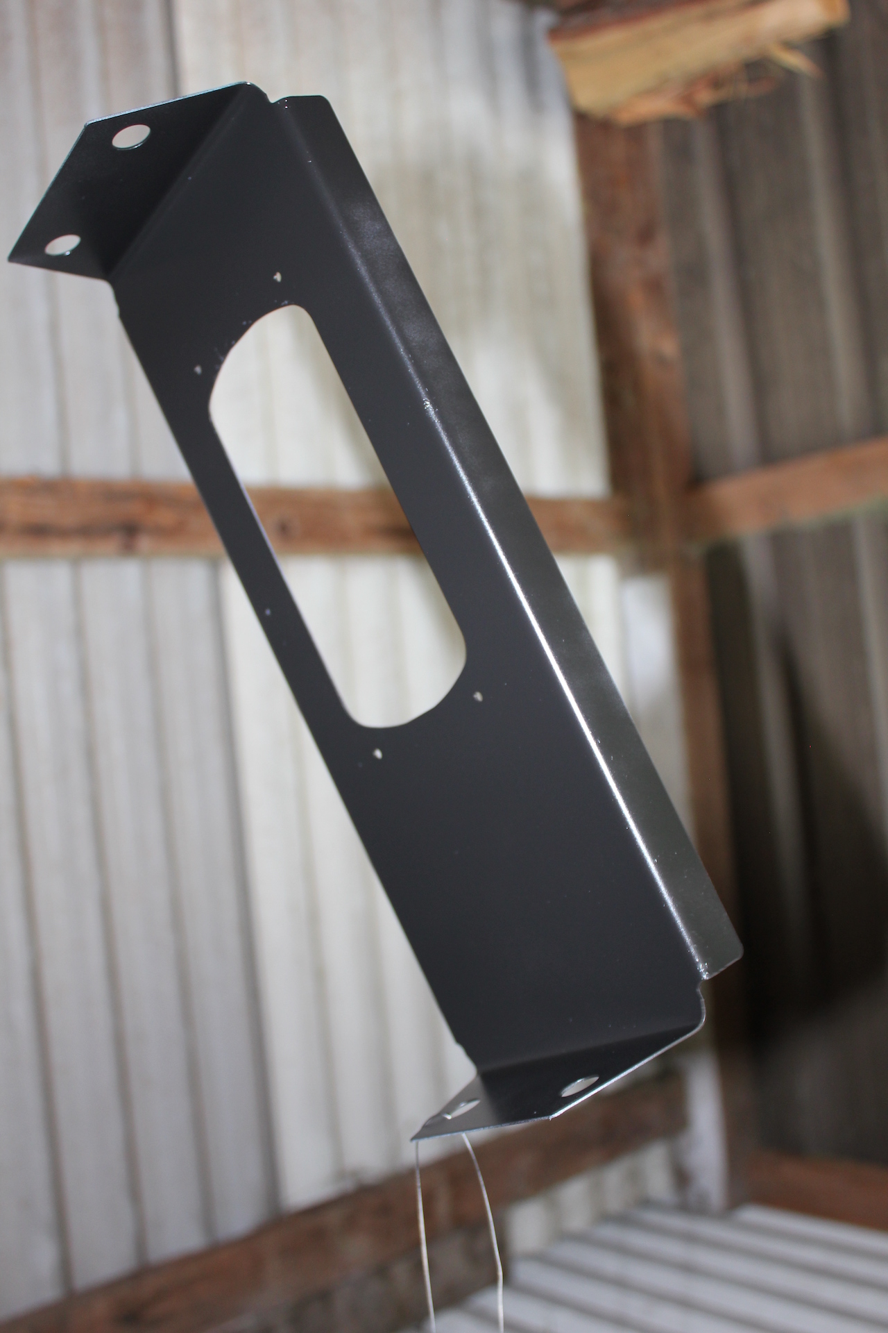 -I STARTED BY PRIMING AND PAINTING THE LIGHT MOUNT BRACKET BLACK TO MATCH THE LIGHT AS THIS WILL BE CLOSED UP SOON AND I DONT WANT IT TO LOOK OUT