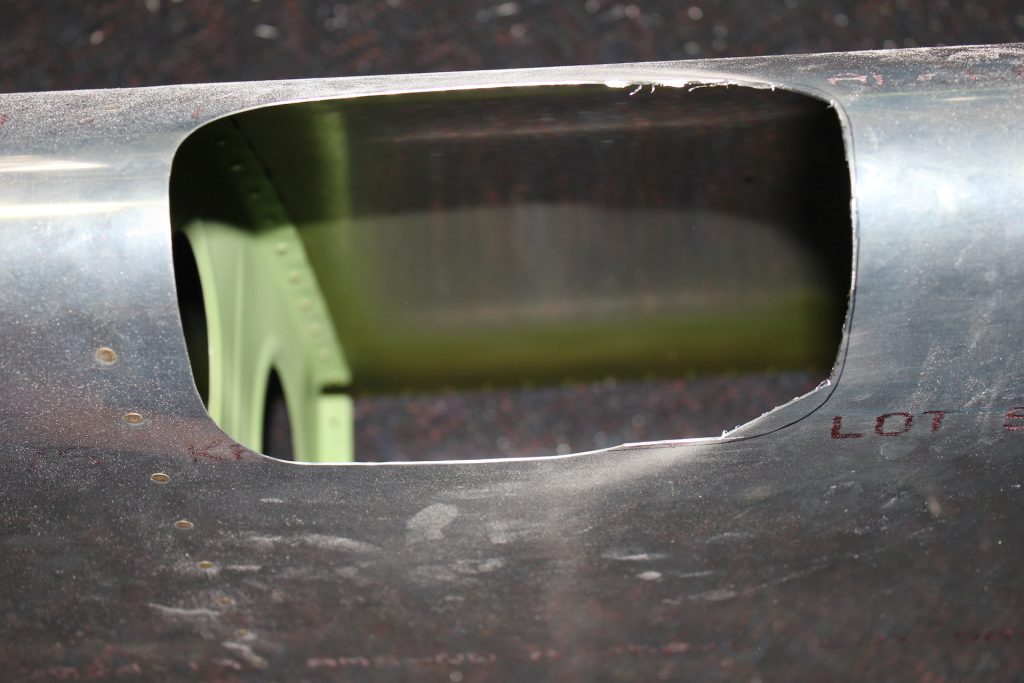 -AFTER CONSULTING OTHER BUILDERS I DECIDED TO EXTEND THE LANDING LIGHT CUTOUT 1.5″ OUTBOARD SO THE LED LAMPS WOULD LINE UP, THIS WILL ALSO GIVE THE BENEFIT OF BETTER LIGHT DISPURSION INBOARD.