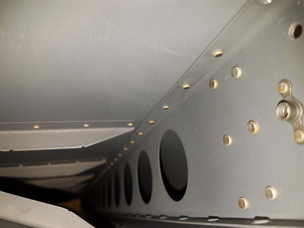 -RIVETED TOP ROW OF AFT SKIN-MAIN RIB RIVETS