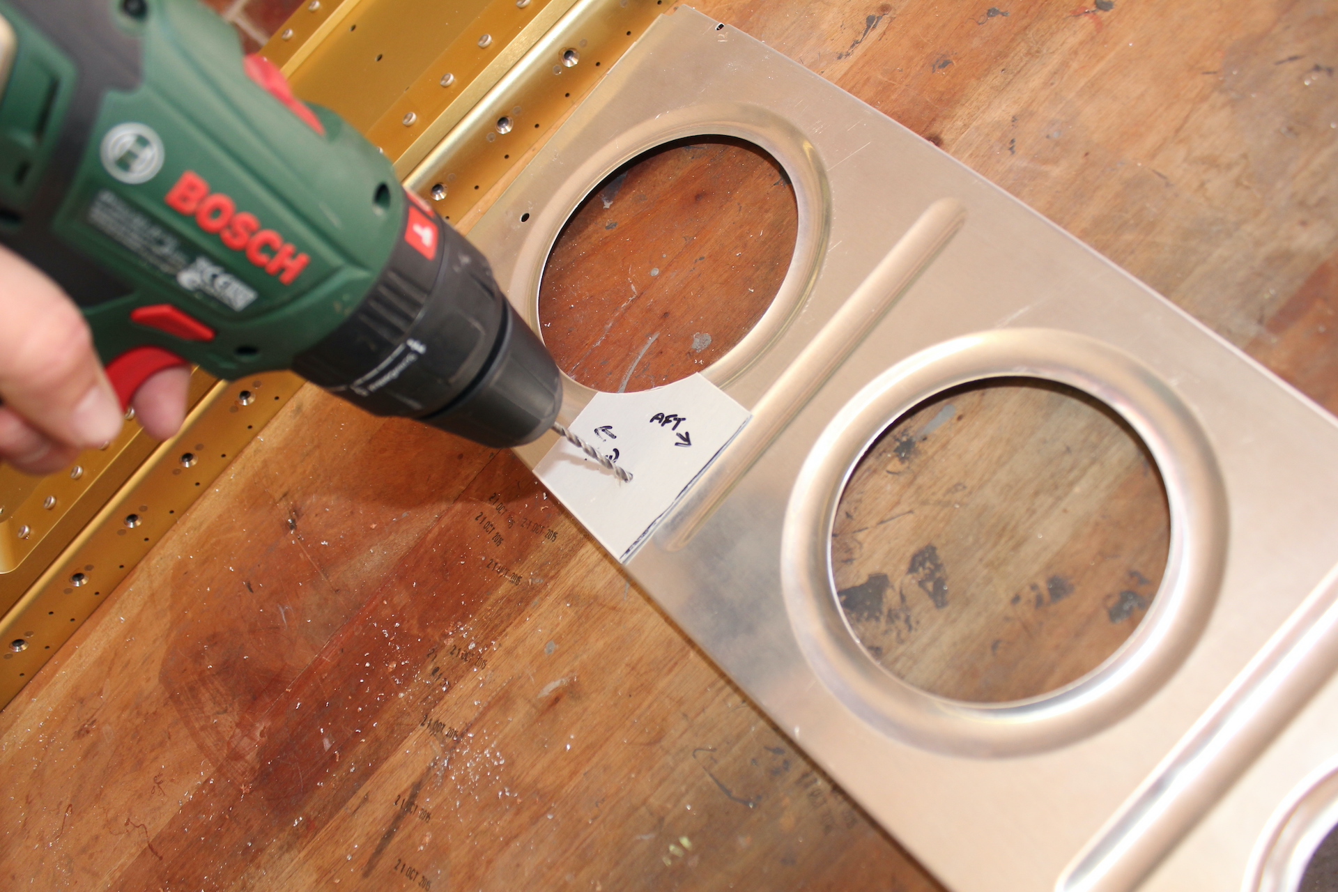 -DRILLED WIRING HOLE PILOTS IN RIBS USING TEMPLATE FROM LEFT WING