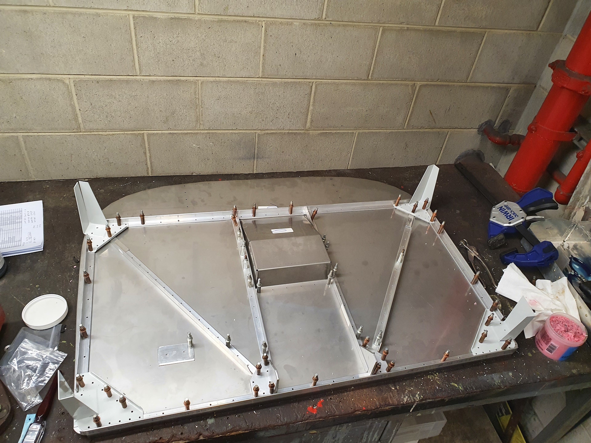 -CLECOED & DRILLED FIREWALL RECESS TO FIREWALL ASSY (THE FIREWALL RECESS WAS A PAIN TO FIT DUE TO THE FLANGES NOT BEING EXACTLY RIGHT BUT AFTER A BIT OF WORK GOT TEM TO SIT FLUSH TO THE FIREWALL)