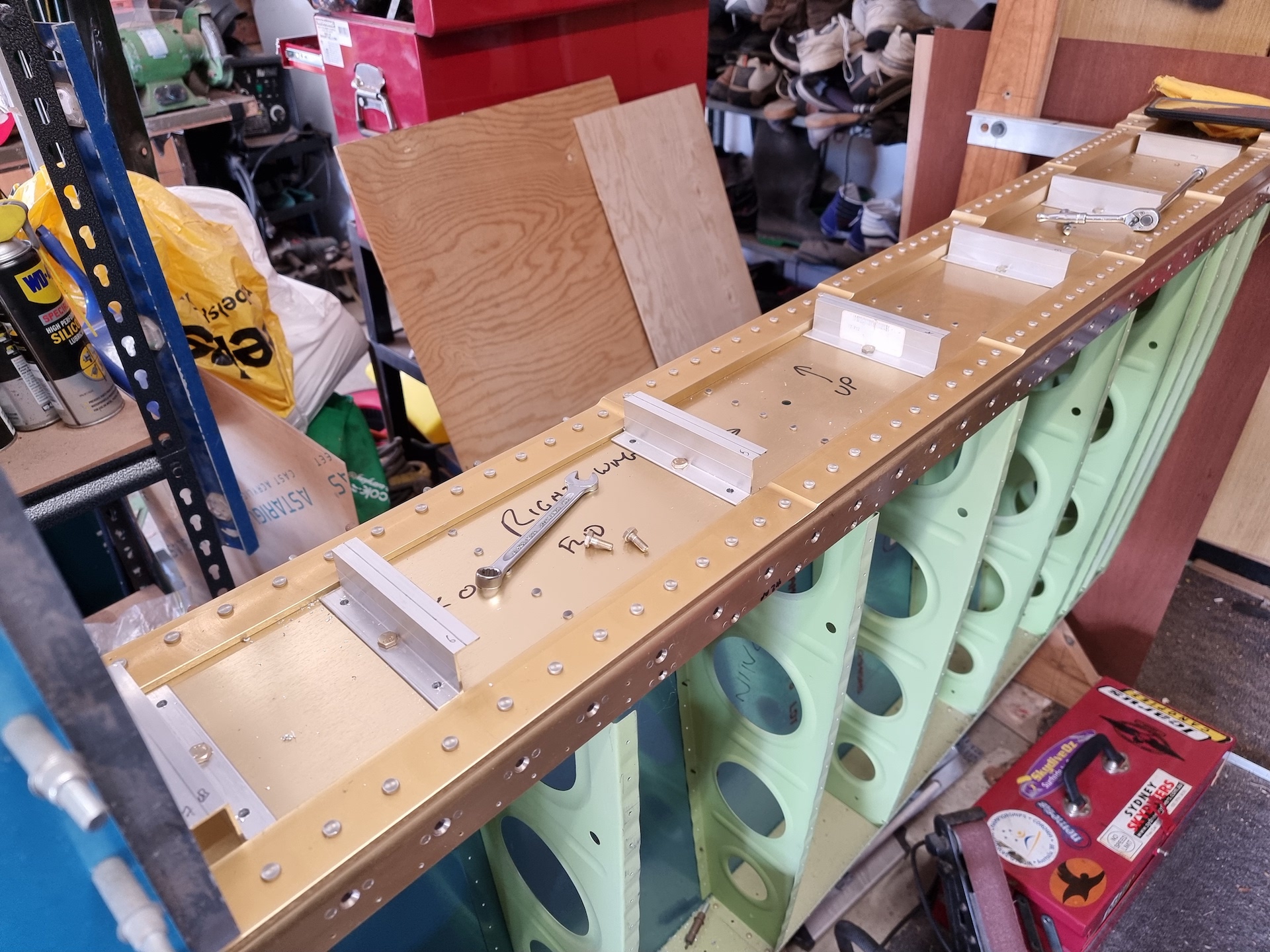 -Properly clecoed right fuel tank ribs in place