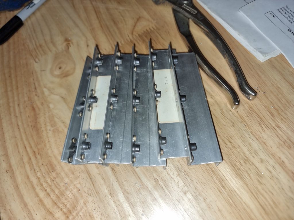 -Salvaged almost enough k1000-3 platenuts from old Z brackets but had to substitute a few for the interchangeable MS21047L3 platenuts, riveted those to the Z brackets