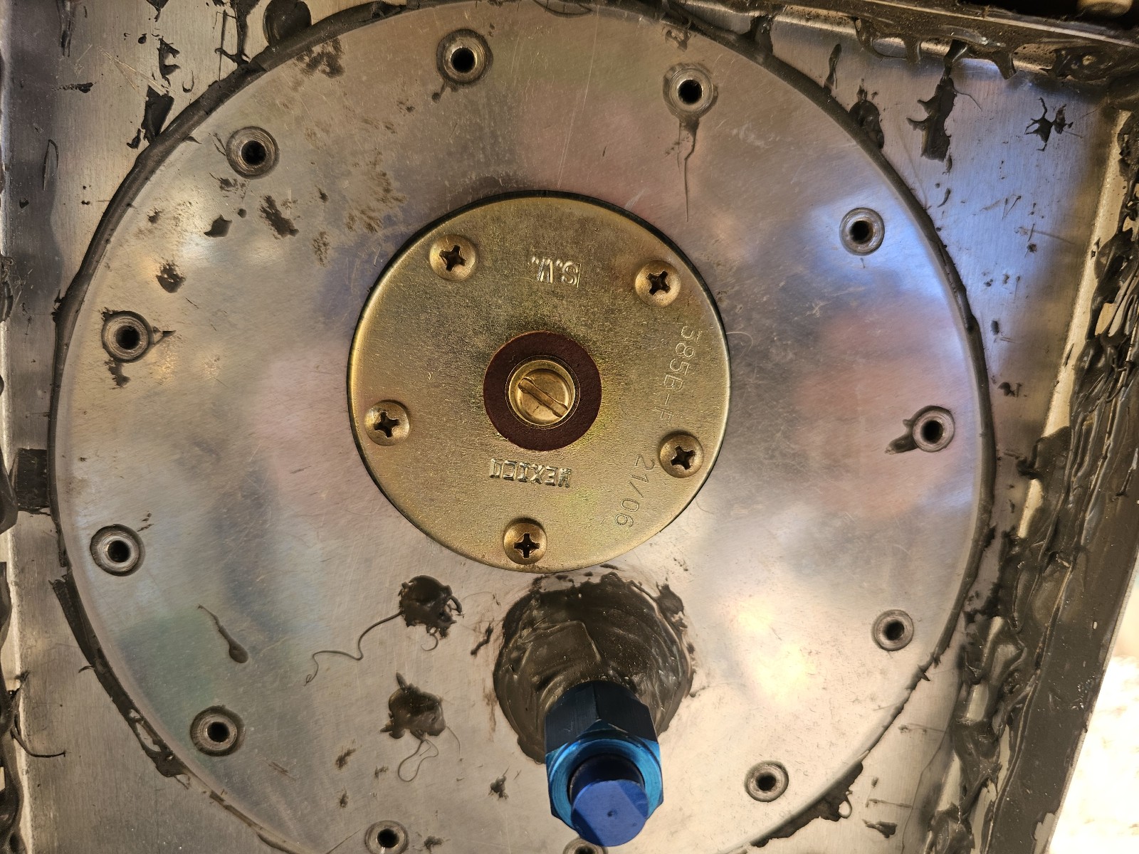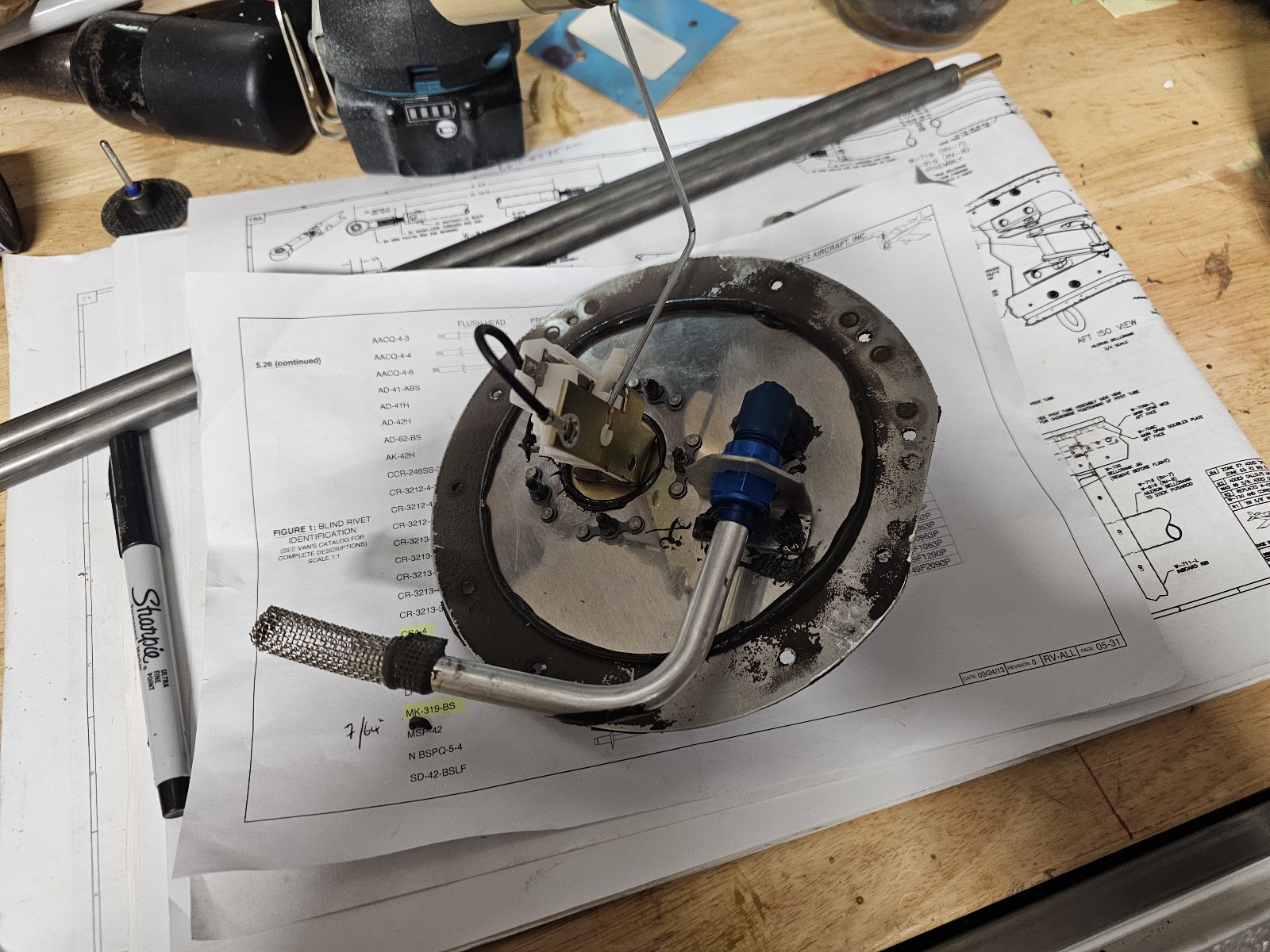 -Pop Riveted nutplates in position for Left Fuel tank sender & temporarily fitted sender – pending sealing